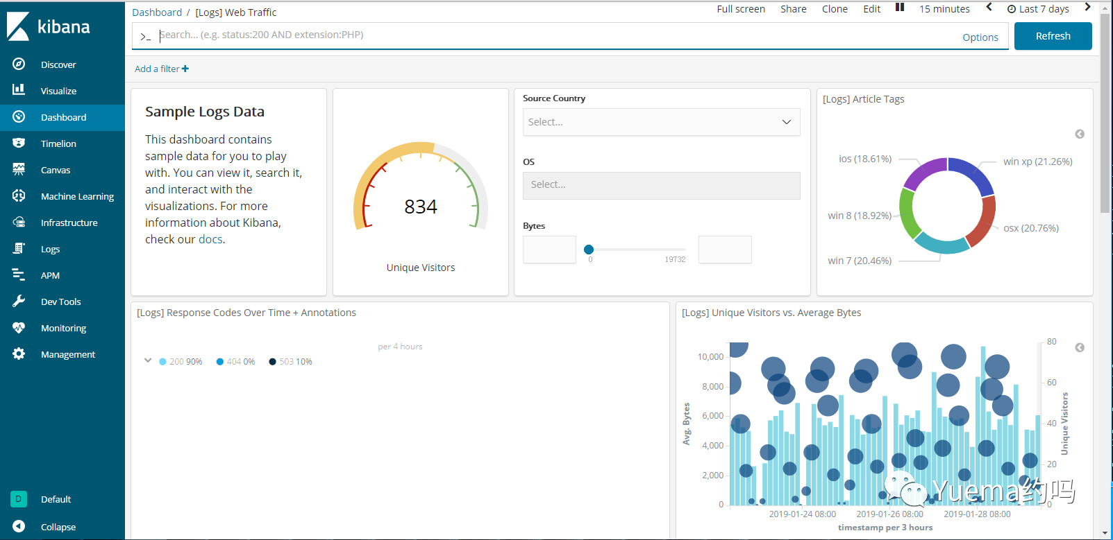 初看,是看不出什么内涵,就罗列了一堆维度,看不出什么机器学习的能力。好像一个营销噱头,也可能我没有看到kibana的机器学习功力。