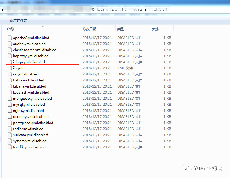 将filebeat-6.5.4-windows-x86_64\modules.d\iis.yml.disabled 改名为 iis.yml