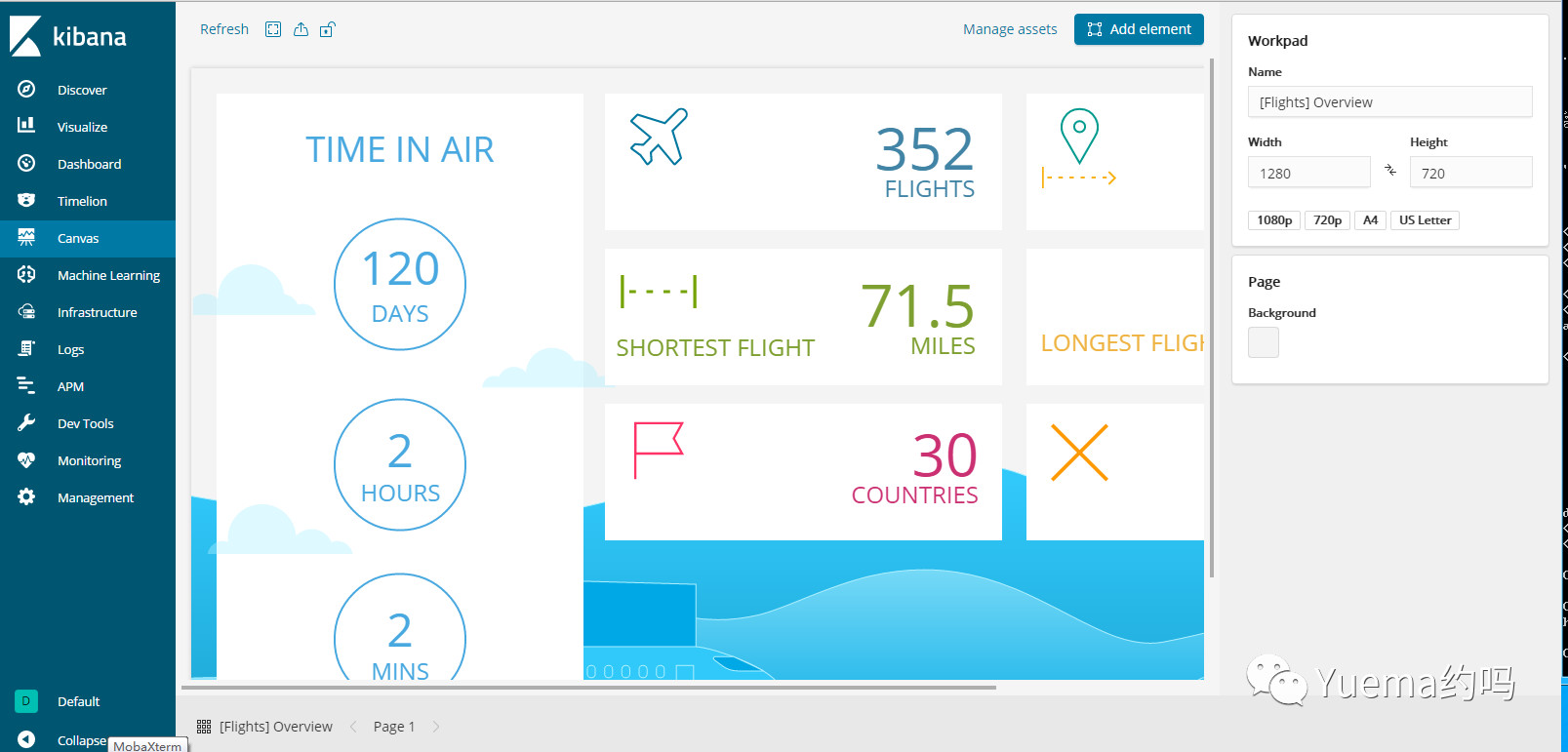 进入http://localhost:5601/ 查看kibana,进入是空白的,kibana自带了一些示例数据,在里面点点点就找到了,进入Dashboards