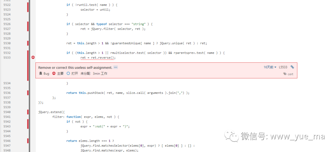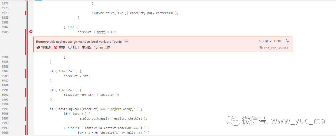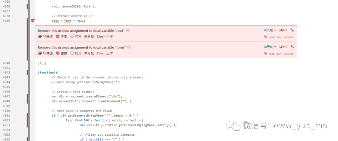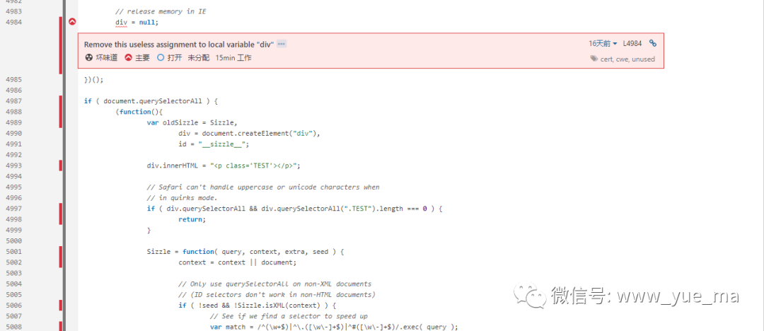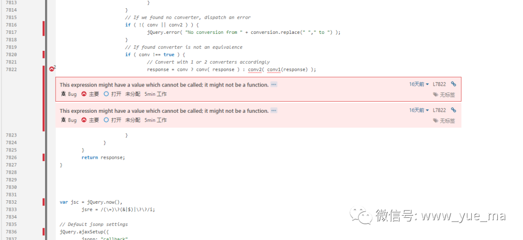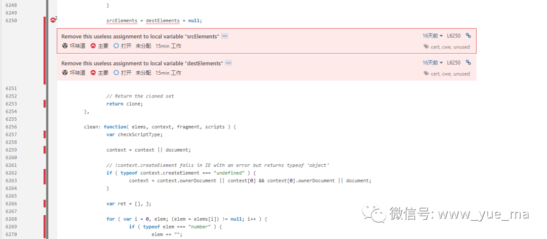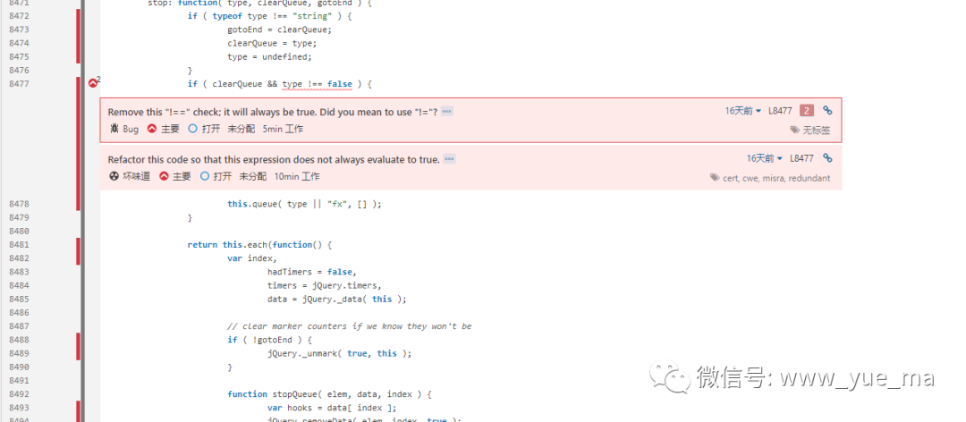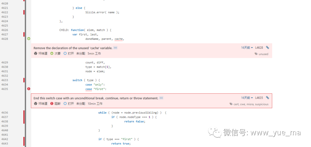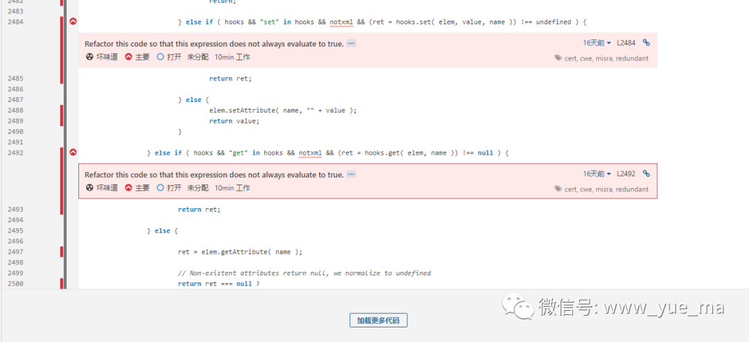 对于类似jQuery第三方库,真的不适合放到sonarqube中检查了!有不少是很特殊的写法,已经不在sonarqube的领域了!这么多提示,有没有你觉得真的是不合理的地方,是jQuery的代码质量问题?欢迎留言说出您的看法!