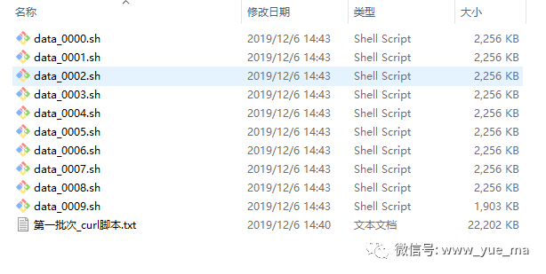 split -l 2 1.txt -d -a 4 data_&&ls|grep data_|xargs -n1 -i{} mv {} {}.sh